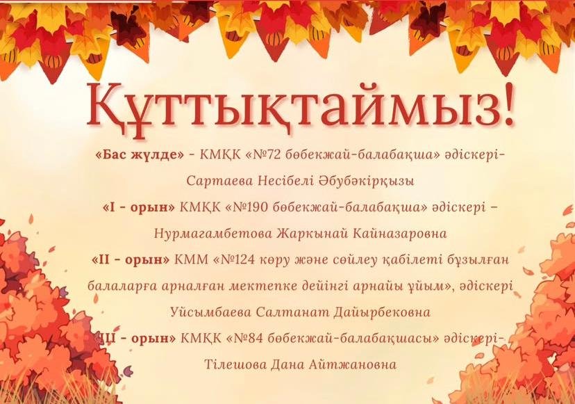 "Мектепке дейінгі ұйымның жыл әдіскері" байқауы қалалық кезеңі » №84 бөбекжай-балабақшасы